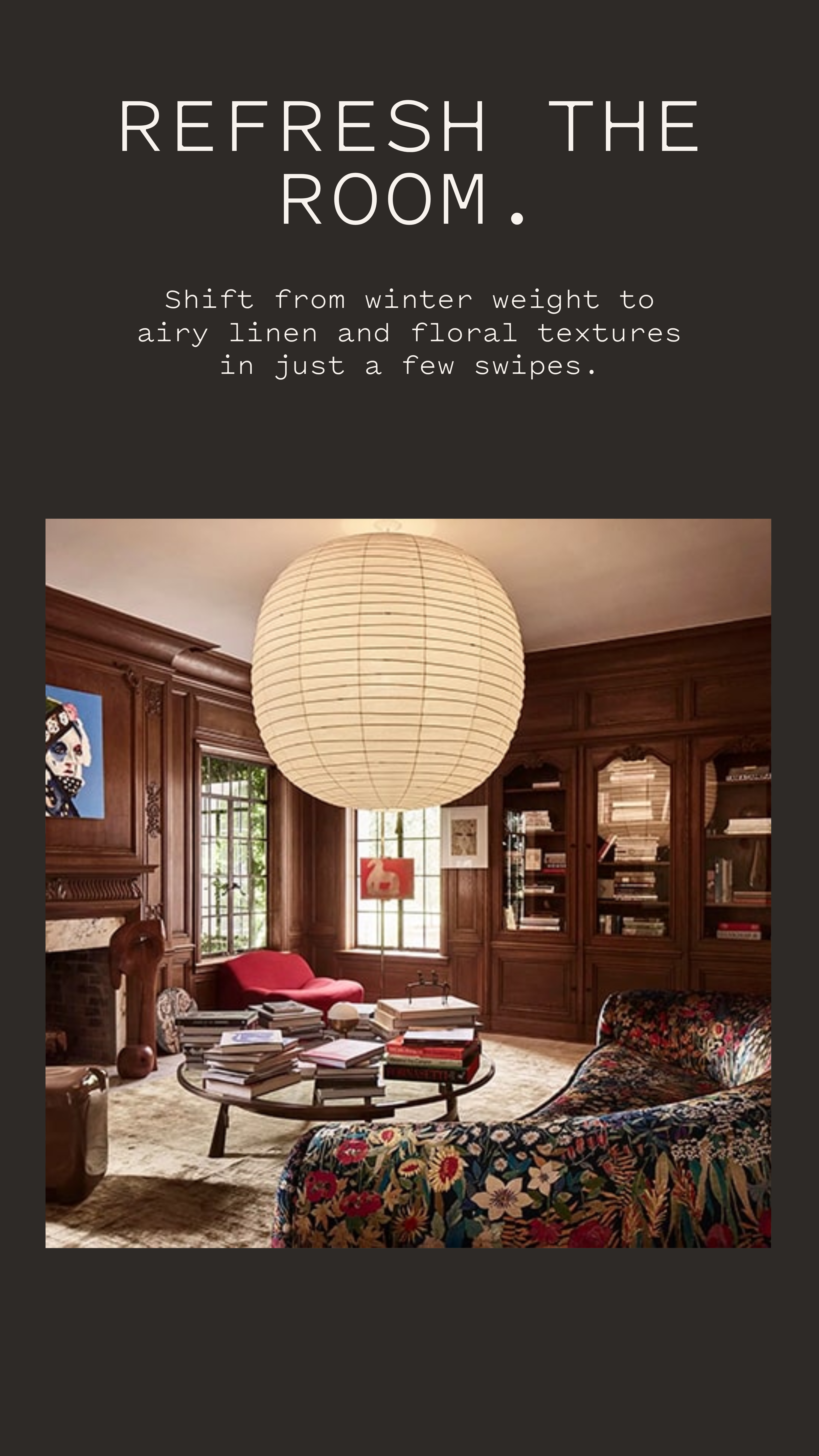 Spotify Wrapped mechanic for interior design. Personal style profile designed to be screenshot and shared.