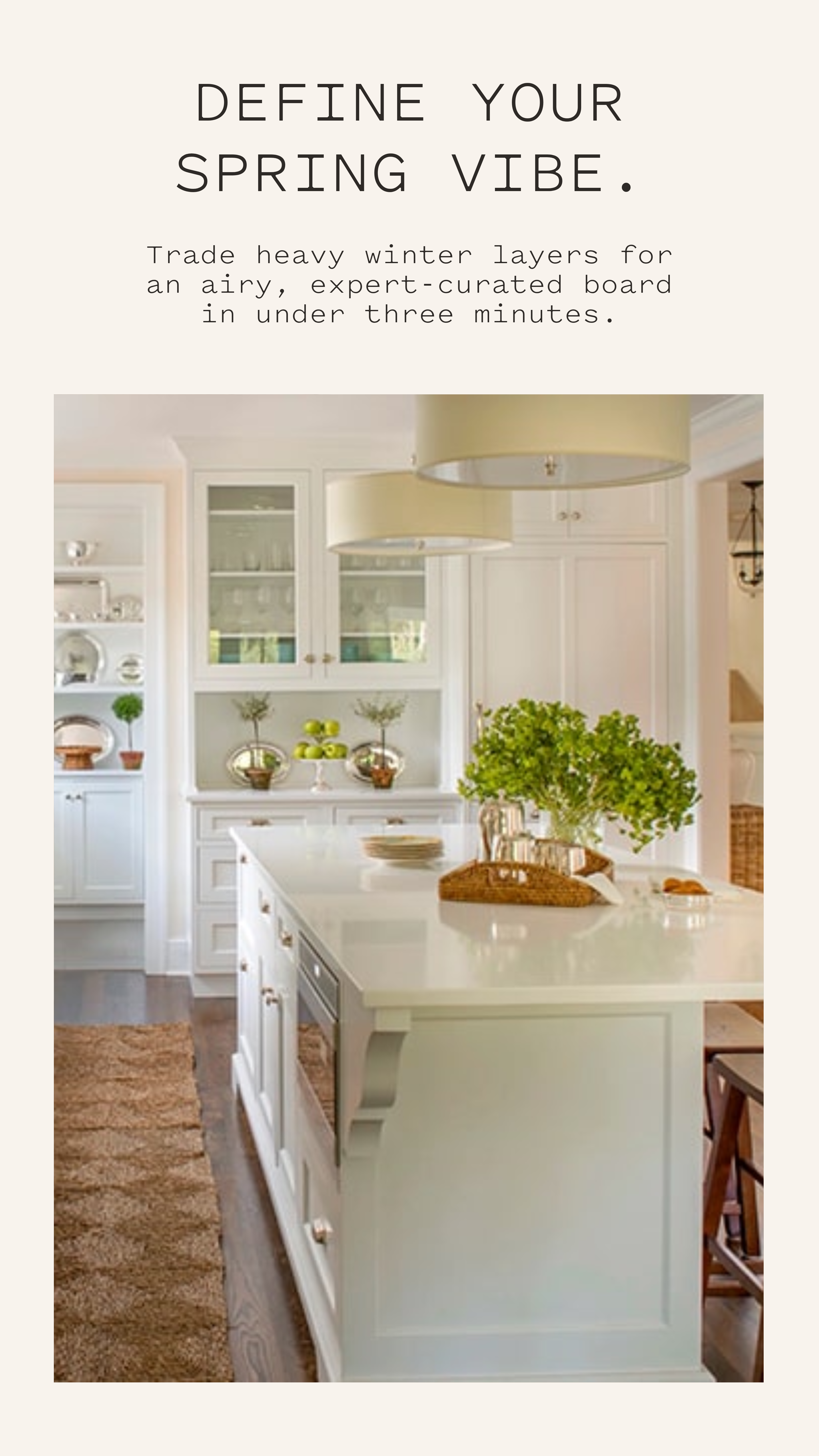 Primarily women 25–45. Homeowners, renters, and first-nesters. They scroll Pinterest for inspiration but never land on a personal style. Follow HGTV, Apartment Therapy, and home decor accounts.